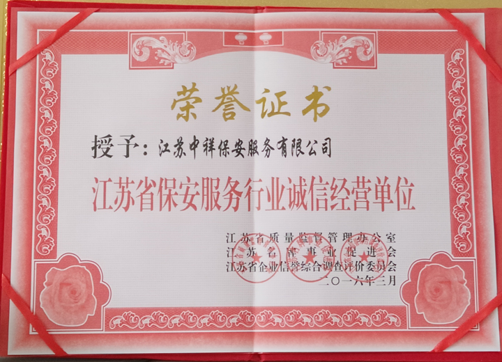 江蘇中祥保安服務(wù)有限公司是經(jīng)江蘇省公安局廳,市公安局批準(zhǔn)的具有合法資質(zhì)的保安服務(wù)公司,屬上海智成旗下子公司,我司從2003年以來至今已有十幾年的管理經(jīng)驗(yàn),多年來一直專業(yè)從事企業(yè)安全外包、大型活動(dòng)現(xiàn)場(chǎng)保衛(wèi)、長(zhǎng)短期保鏢、緊急危機(jī)處理、技術(shù)防范等全面安全事務(wù)管理服務(wù),保潔服務(wù),物業(yè)管理服務(wù),取得了驕人的業(yè)績(jī),并受到客戶的高度贊揚(yáng)。